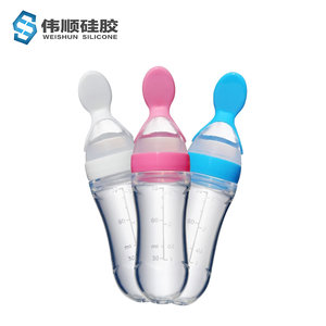 特点:采用安全硅胶材质,耐高温。特有带盖勺子,适合给宝宝喂米糊,辅食,牛奶等等!宝宝离乳期的过度奶瓶,吃多少挤多少,一点都不浪费。是宝宝必备神器哦!