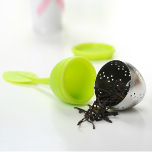 特点:健康环保,时尚,办公室的新潮流创意不锈钢硅胶茶漏,耐高温耐强酸强碱,造型新颖别致,使用方便,打开虑格放入茶叶