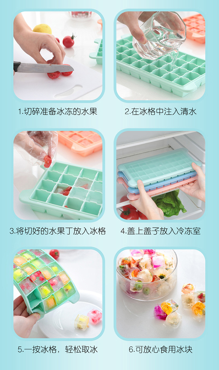 2、带盖设计,不易串味,冰格都带有冰盖,使冰冻更快速,而且再也不用担心放进冰箱会串味