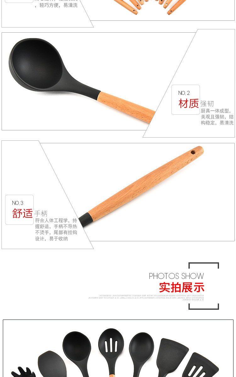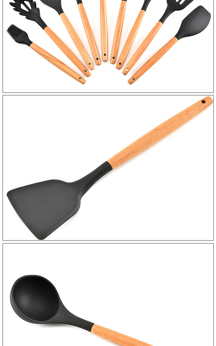 - 名称:木柄9件套硅胶厨具,硅胶厨具九件套木柄
