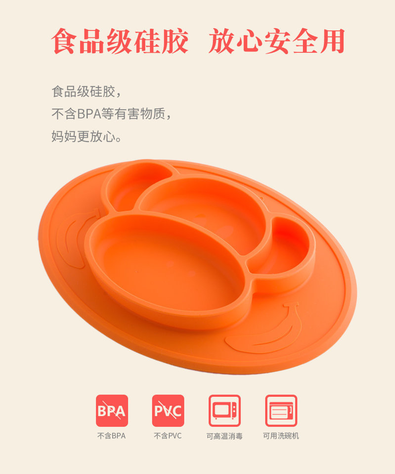 【产品名称】:儿童硅胶猴子餐盘