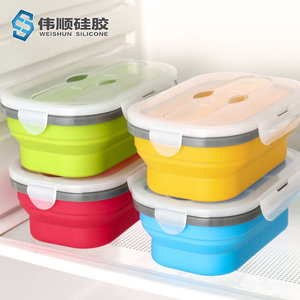 硅胶折叠饭盒,硅胶伸缩便当盒,硅胶耐高温饭盒