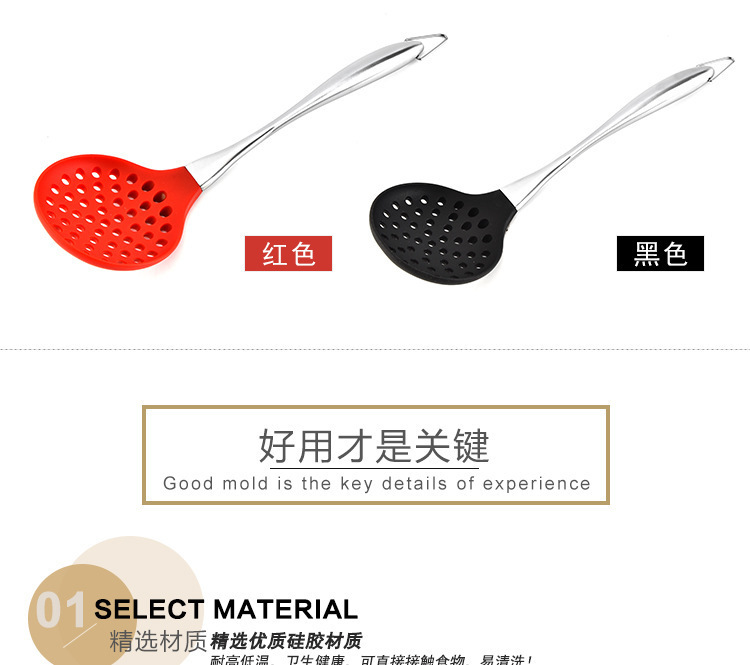 - 硅胶漏勺,不锈钢柄硅胶漏勺,硅胶捞面勺