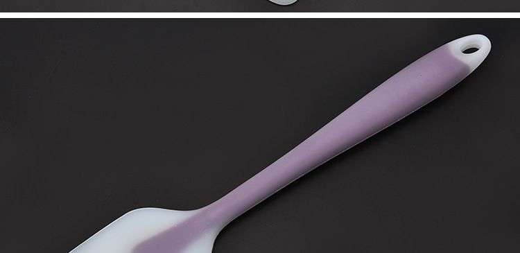 【说明】刮刀全身无缝隙无死角,容易清洗,不易滋生细菌,手柄外部是硅胶材质,内部包裹不锈钢柄不易折弯,耐用。硅胶材质为可耐230度高温,可在加热过程中搅拌使用不会老化变硬。硅胶料符合美国FDA质量,无毒环保,耐温-40℃到+230℃,无接缝,容易清洗一体刮刀,耐高温220度,无接缝,容易清洗,不容易有死角。手感弹性非常好,用起来非常舒服的刮刀!