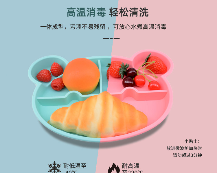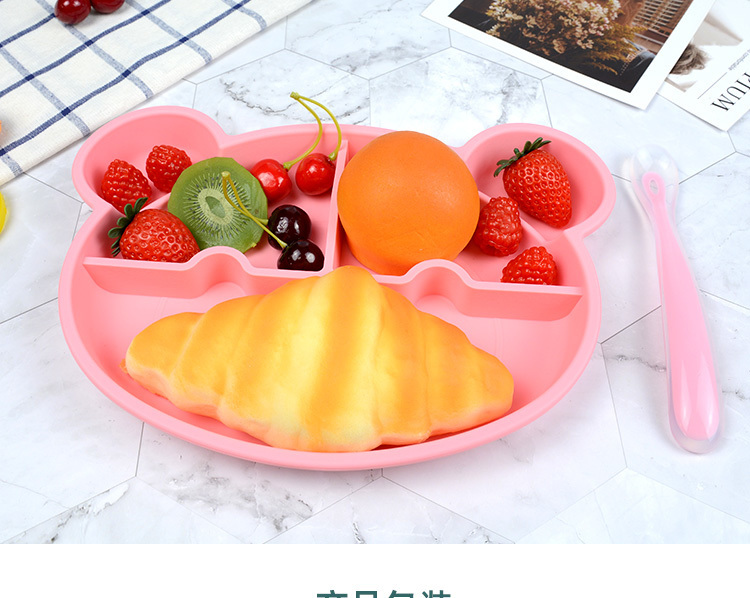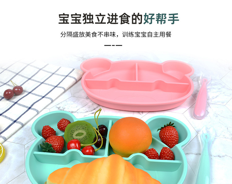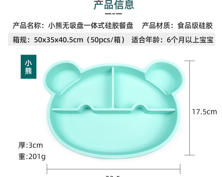 产品名称:小熊硅胶餐盘 一体式儿童可爱卡通餐垫盘 分格辅食环保无气味防摔